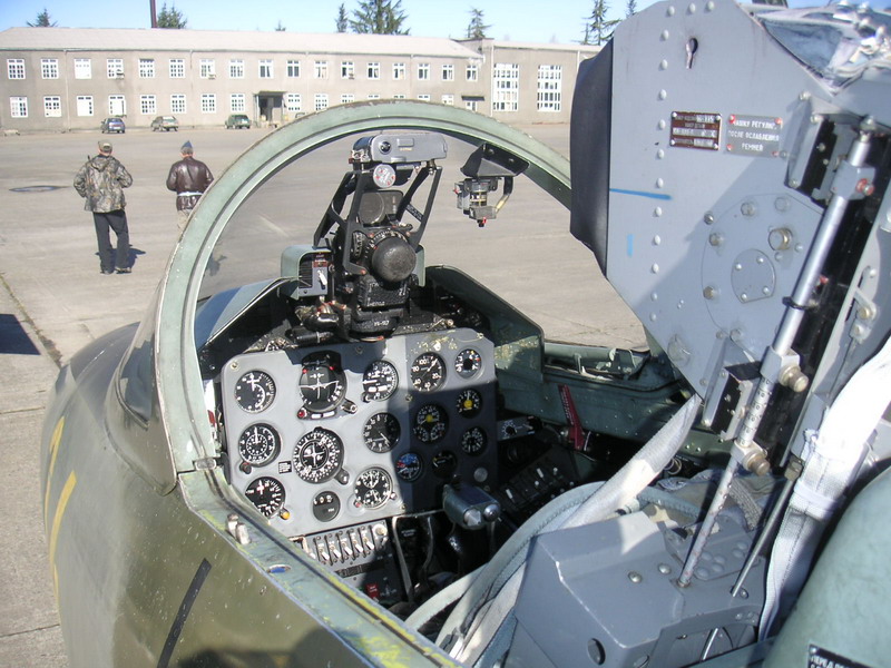 Л-39 оказался совсем небольшим самолетом, но уж очень он smart, что называется. Компактный, элегантный, красивый. Меня хотели усадить в первую кабину, но т.к. я не был знаком с РЛЭ, а запуск весь производится из первой кабины и дублирующих средств в задней кабине не имеет, мне все-таки предложили в заднюю. В первом самолете отказала радиостанция, поэтому пришлось пересаживаться на другой борт. На нем были установлены подвесы с пушками. Узнав, что я собираюсь на пилотаж, их решили отстегнуть. Сняли подвесы, уселись в кабину. Надо сказать, что кабина хоть и тесная, но вполне уютная. Все приборы понятные, на своих местах, освоился быстро.