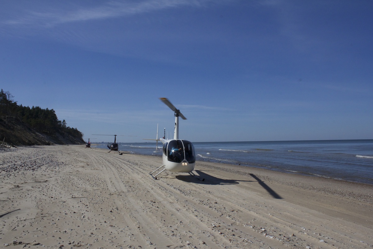 Аэропорт Вентспилс работает по расписанию и как раз в наш прилет он был закрыт, поэтому мы прекрасно сели на пляж и дозаправили свои вертолеты из канистр.