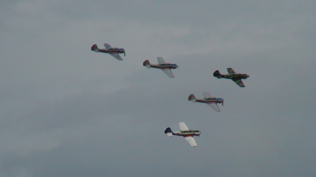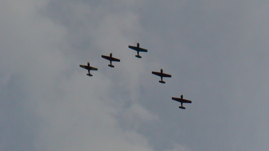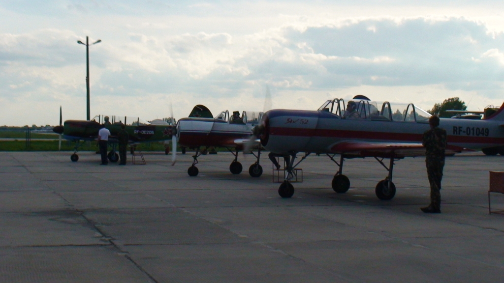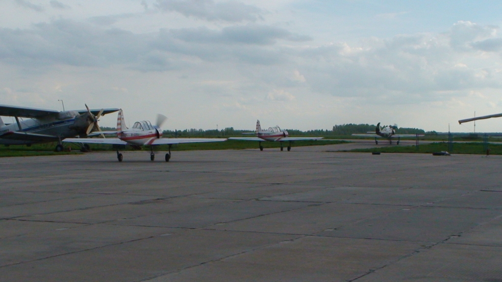 Насыщенные выходные только начинались, и после обеда субботы повалил народ на ЯК-52. Пришла группа товарищей, как раз освободилось три ЯКа и (как в тему) три инструктора, летающих на яке на пилотаж. Так мы и пошли — три друга на покататься и нас трое. Вырулили друг за другом, разошлись в зоны и задали перцу себе и тем, кто сзади:) Кто что, а я просто восстанавливал навыки по прошлогодним упражнениям. Бочечки, петелечки, полупетелечки, перевортики, штопорки, ничего серьезного в общем.