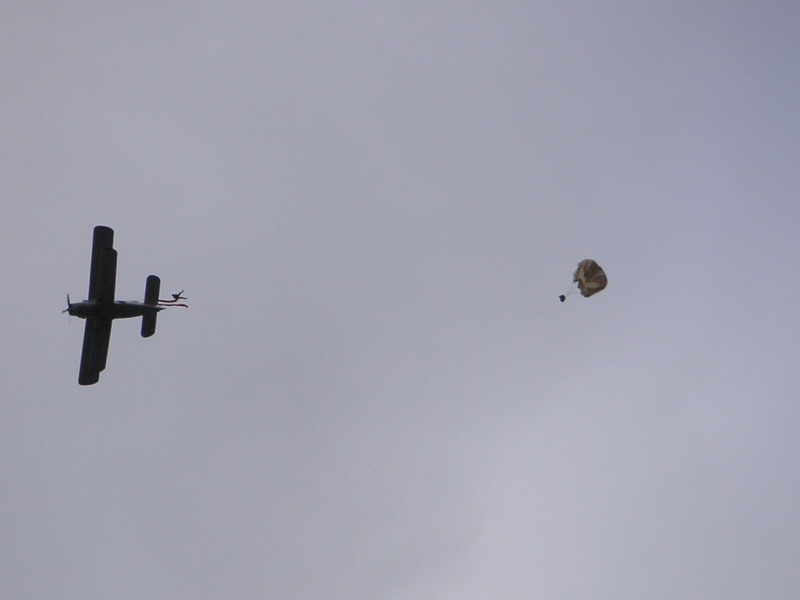 Программа началась практически вовремя, сдвинули на несколько минут из-за взлета пары СУ-25-х, откуда они там взялись — непонятно, но это и не наше дело, военные нам не отчитываются. Дальше все по программе, выступление музыкального коллектива десантников (очевидно, что они настоящие ВДВ, потому что играют откровенно хреново, а поют еще хуже), торжественное открытие праздника, представление авиатехники на площадке, пролет МИ-2 с российским триколором и первый взлет парашютистов с флагами. Это все было, но это не самое интересное, конечно. Писать обо всем наверное нет смысла, поэтому остановлюсь только на самых запомнившихся моментах.