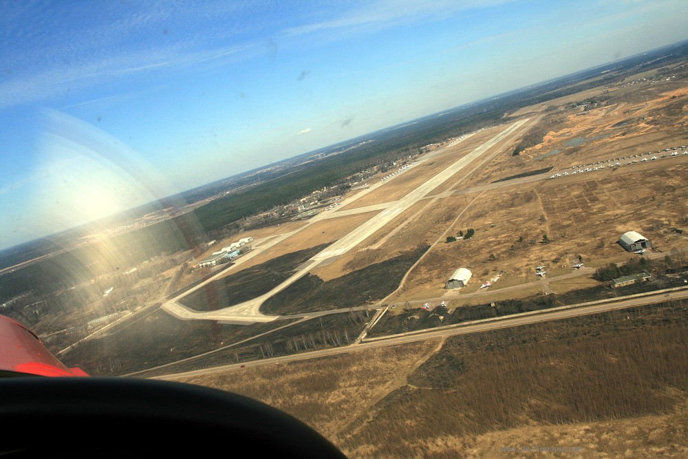 Ну и про сами гонки (под занавес). Для тех, кто не в курсе — суть авиагонок состоит в следующем. Стартуют два самолета одновременно с одним курсом (они должны пройти линию старта одновременно) и летят над ВПП. Один самолет по левому краю ВПП, второй по правому, соответственно между ними 80-100 метров расстояния по горизонтали. Долетают до финиша (это виртуальная линия — дальний торец ВПП) и производят одновременный разворот (во внешнюю сторону под 45 градусов). После разворота летят в сторону старта и там делают еще один разворот. В итоге участники проходят над ВПП 4 раза (туда-обратно, туда-обратно). Кто первый пересекает торец впп после 2-го круга — тот и победитель. На самом деле нельзя сказать, что соревнования супер-зрелищны. Но если понимать смысл, который заключается в том, что на прямой при прочих равных условиях (одинаковые самолеты, одинаковая тяга двигателей и масса машин) выиграть практически невозможно, остается только филигранное исполнение разворота, то становится интересно. А если еще лично знать всех участников, то уже можно и поболеть за кого-нибудь. Все победы в этих гонках достигаются разворотом за минимально короткое время и разгоном самолета до максимальной скорости перед выходом на прямую. В принципе, минимальная высота установленная правилами — 100 метров, но можно было неоднократно наблюдать, как участники выходили из разворота с явным пикированием ниже 100 метров для разгона, но как это докажешь, если параметры полета не фиксируются специальной аппаратурой? В общем, в соревнованиях все средства хороши, но в чем не откажешь организаторам и участникам, так это в джентельменстве. Все тот же Андрей Палыч, оставшись в финале один на один с Аллой Чекаловой реально мог бы выиграть (с его-то опытом и уровнем), но уступил. Мужчина, одним словом! В итоге, пальма первенства у Аллы, Макаренко второй, фамилию третьего забыл, но не суть важно. Авиагонки состоялись, уровень был заявлен весьма высокий (одни только титулы каждого из участников ведущий перечислял по несколько минут), о честности можно и поспорить, но то, что это уникальные соревнования на территории России — совершенно очевидно. Может быть как-нибудь через годик и мне удастся принять участие в подобном мероприятии.